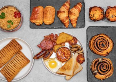 Kickstart your day with our range of freshly prepared breakfast dishes, from classic eggs and bacon to healthy granola bowls.